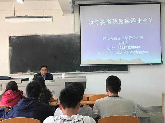 在“一带一路”丝绸之路的大背景下,俄语翻译将发挥着至关重要的作用,为了让同学们能够找准定位,4月26日下午,我校MILE米乐官方网站在3222教室开展讲座,本次讲座邀请到西安外国语大学副教授,硕士研究生导师,全国俄语同声传译译员李建良教授担任主讲。