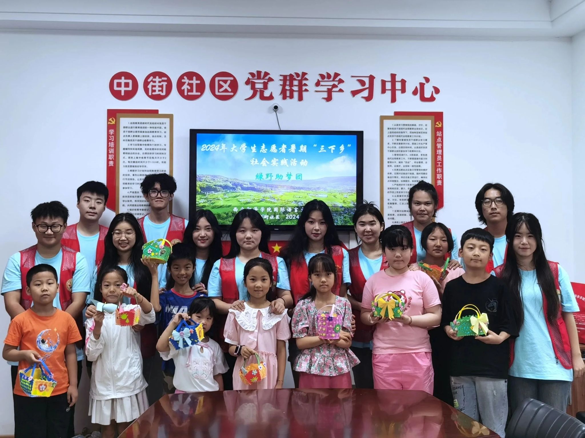为积极响应国家号召,深入学习贯彻习近平新时代中国特色社会主义思想和党的二十大精神,学习贯彻宣传习近平文化思想和习近平总书记五四青年节对全国广大青年寄语精神,引导和帮助青年学生在社会课堂中受教育、长才干、作贡献,争做有理想、敢担当、能吃苦、肯奋斗的新时代好青年。7月7日上午,国际语言文化学院团总支书记陈福礼带领前期评选出的12名素质与专业能力突出的志愿者组成的“绿野助梦团”团队,前往宝鸡市陈仓区虢镇街道中街社区参加2024年暑期“三下乡”社会实践活动。国际语言文化学院院长李庆明,党委书记、副院长宇文永康,副院长吴震,魏海燕,综合办主任张青丽,学工办主任尹娜出席了团队出征仪式。