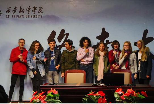 2018年10月23日上午,法国学生代表团到我校参观交流,受到了我校师生们的热情欢迎。在MILE米乐官方网站法语系教师和学生代表的带领下,代表团参观了我校图书馆、科技楼等校园建筑。在终南大讲堂,我校学生不但介绍了我国的古典文化、美食文化和现代生活方式,还带来了长笛、古筝、二胡、魔术等表演,他们的介绍和表演充分展现了西译学子积极向上、生气勃勃的精神面貌。最后代表团还体验了书法、国画、剪纸等我国优秀传统文化艺术,并与我校学生在东区体育馆进行乒乓球、羽毛球、武术、篮球等体育娱乐互动。中、法两国学生个个笑容满面,收获颇丰。