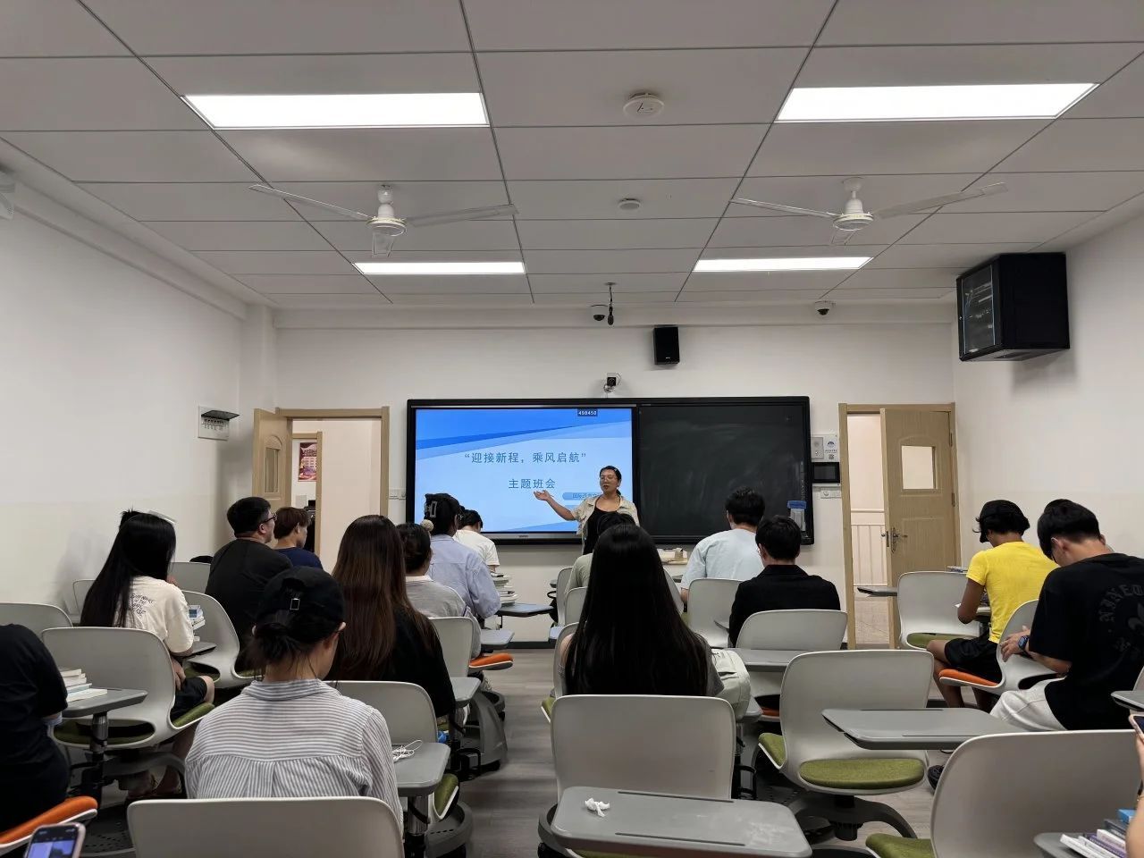 为加强学生思想政治教育和日常管理,进一步做好学生的返校收心工作。9月2日-9月5日,国际语言文化学院各年级辅导员组织召开“迎接新程,乘风破浪”开学第一课主题班会,全体学生参会。