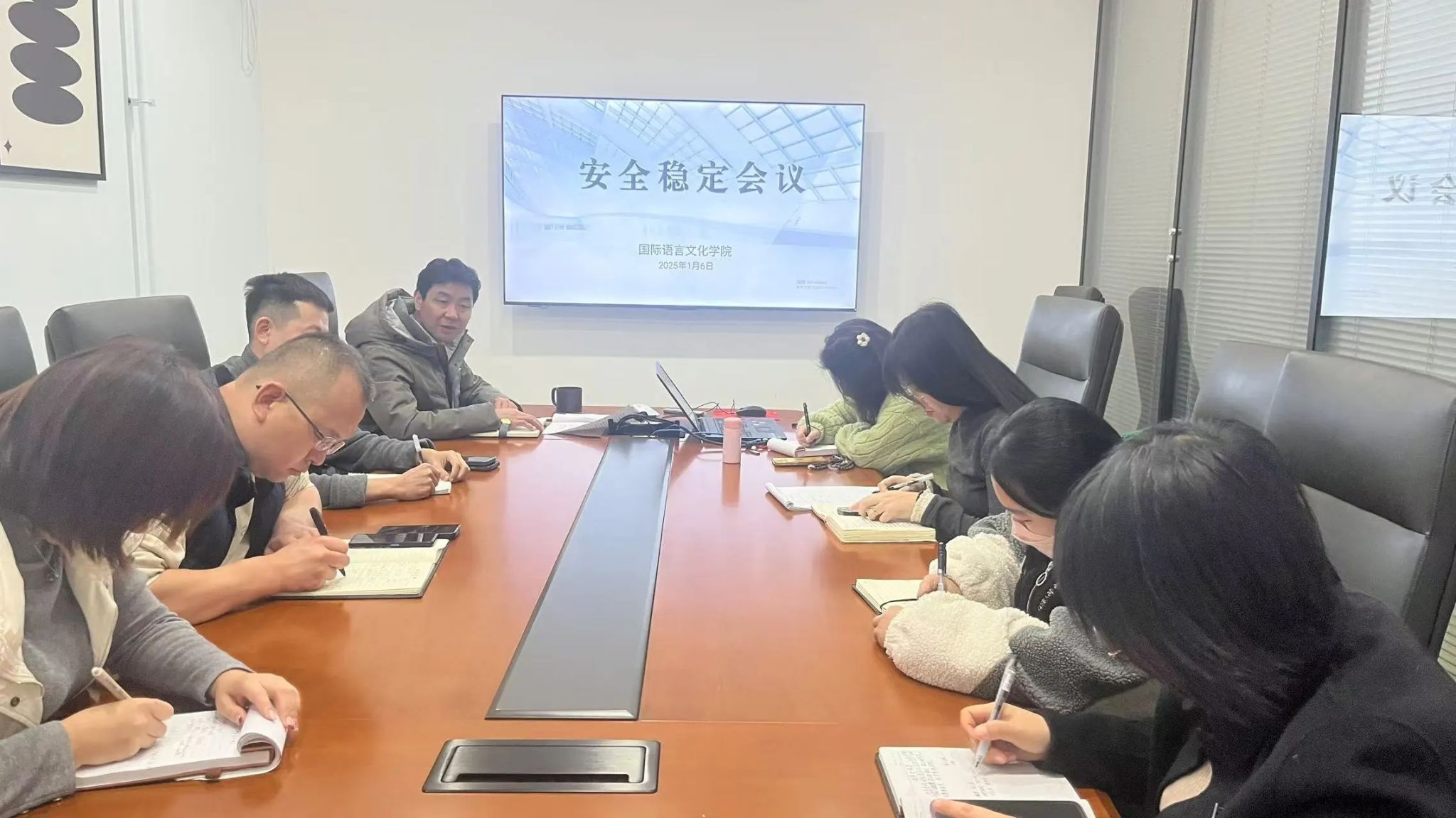为确保学期末的校园安全与稳定,1月6日上午,国际语言文化学院召开安全稳定会议。学院党委书记、副院长宇文永康,综合办副主任尹娜,团总支书记陈福礼及全体辅导员参会。