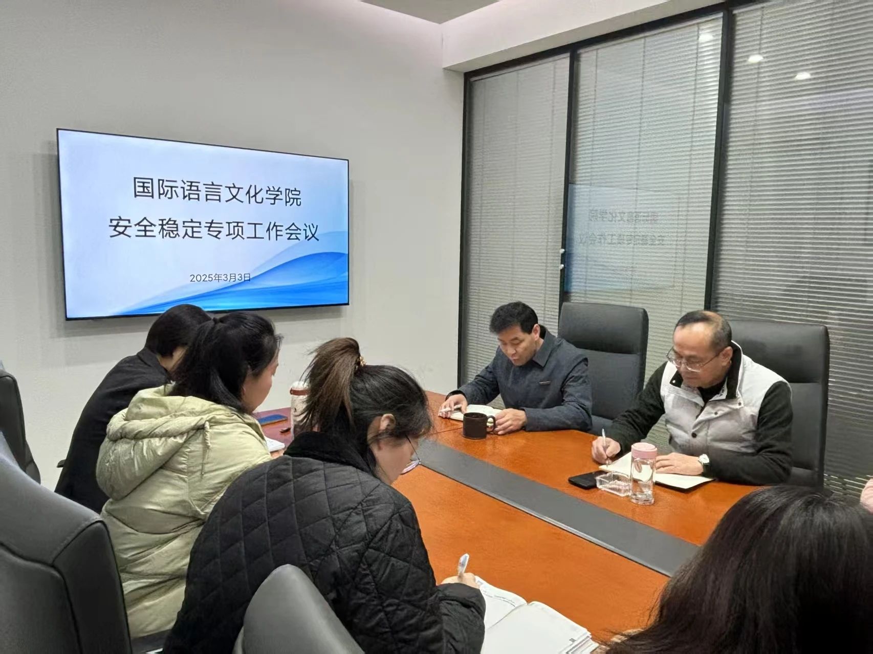 国际语言文化学院将以此次会议为契机,进一步提高政治站位,强化责任担当,狠抓工作落实,全力以赴做好安全稳定各项工作,为学院各项事业发展营造安全稳定的校园环境。