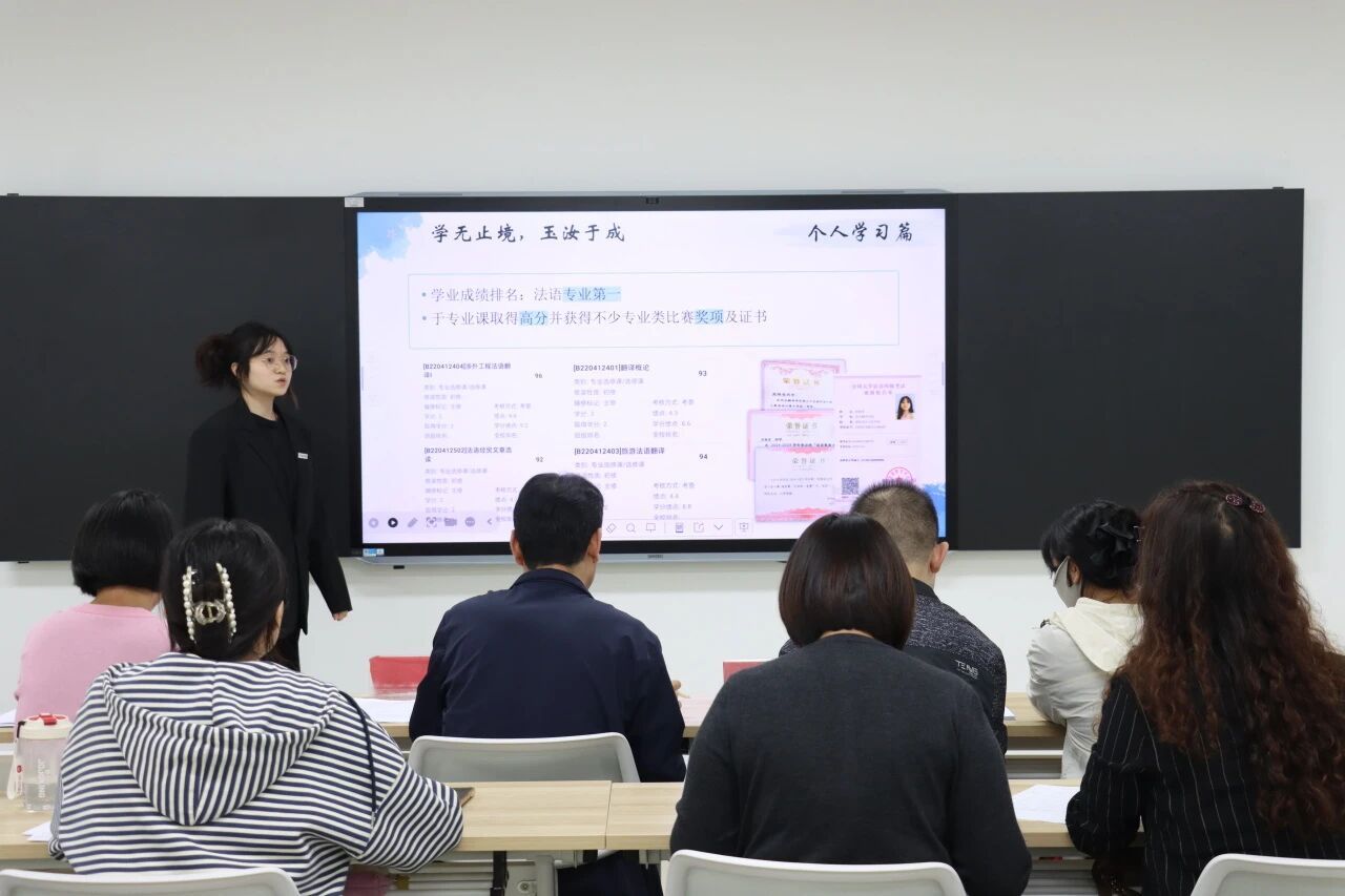 9月18日晚,国际语言文化学院在3119教室举行2024-2025学年国家奖学金答辩评审会。学院党委书记、副院长宇文永康和全体辅导员出席担任评委。答辩会现场气氛严肃而热烈。