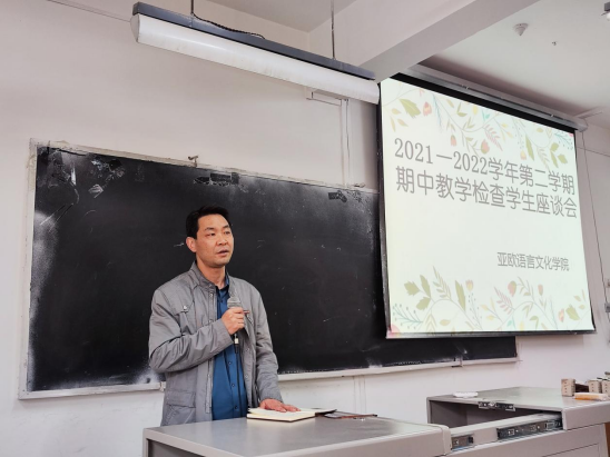 他对学生代表所提问题进行归纳总结:图书馆学习资料的拓展和更新,需多渠道、多层面进行反馈和落实。课堂秩序需要任课老师、辅导员、班委多方共同监督管理,同时,他希望学生们积极适应大学的教学方式、学习要求和作息安排,发挥学习的自主性,及时温故知新,做好课前预习和课后复习,提高课堂学习效率,积极主动地探索适合自己的学习方法,提升学习能力。鼓励学生党员、班委、积极分子们自觉发挥模范带头作用,引导大家端正学习态度,营造浓厚学风,充分利用学校的学习资源,在大学四年努力学习,不负韶华,不负青春。