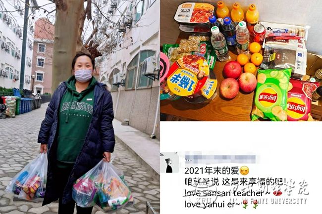 这些“新年大礼包”由刘珊老师亲自送到西译宾馆,再由防疫人员送到每个隔离学生的房间。学生们收到这份特殊的新年礼物,都非常开心。他们表示,虽然西安已经进入了数九寒冬,但他们在学校里的学习生活一如既往。有这么多老师和工作人员的无私奉献,他们更坚定了安心隔离的决心。