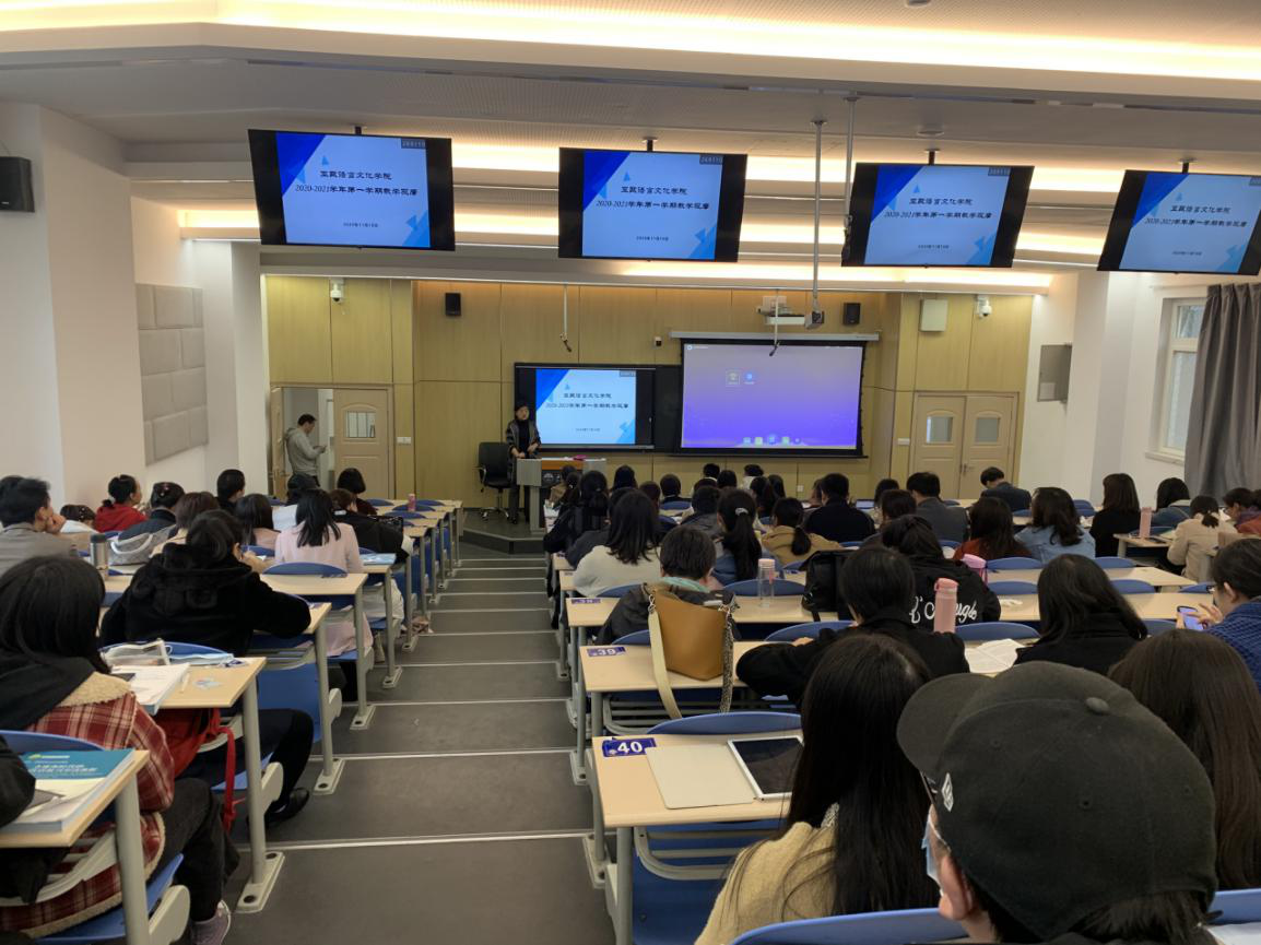 最后是德语教师卞红联所展示的课程。课程采用了混合式教学方法,以典型例句对比分析法和问题导向式教学方法为主,辅助智慧教室,超星学习通等现代化的教学手段来开展教学。打造深入且高效的师生互动关系,激发和培养学生的思考能力及自学能力。
