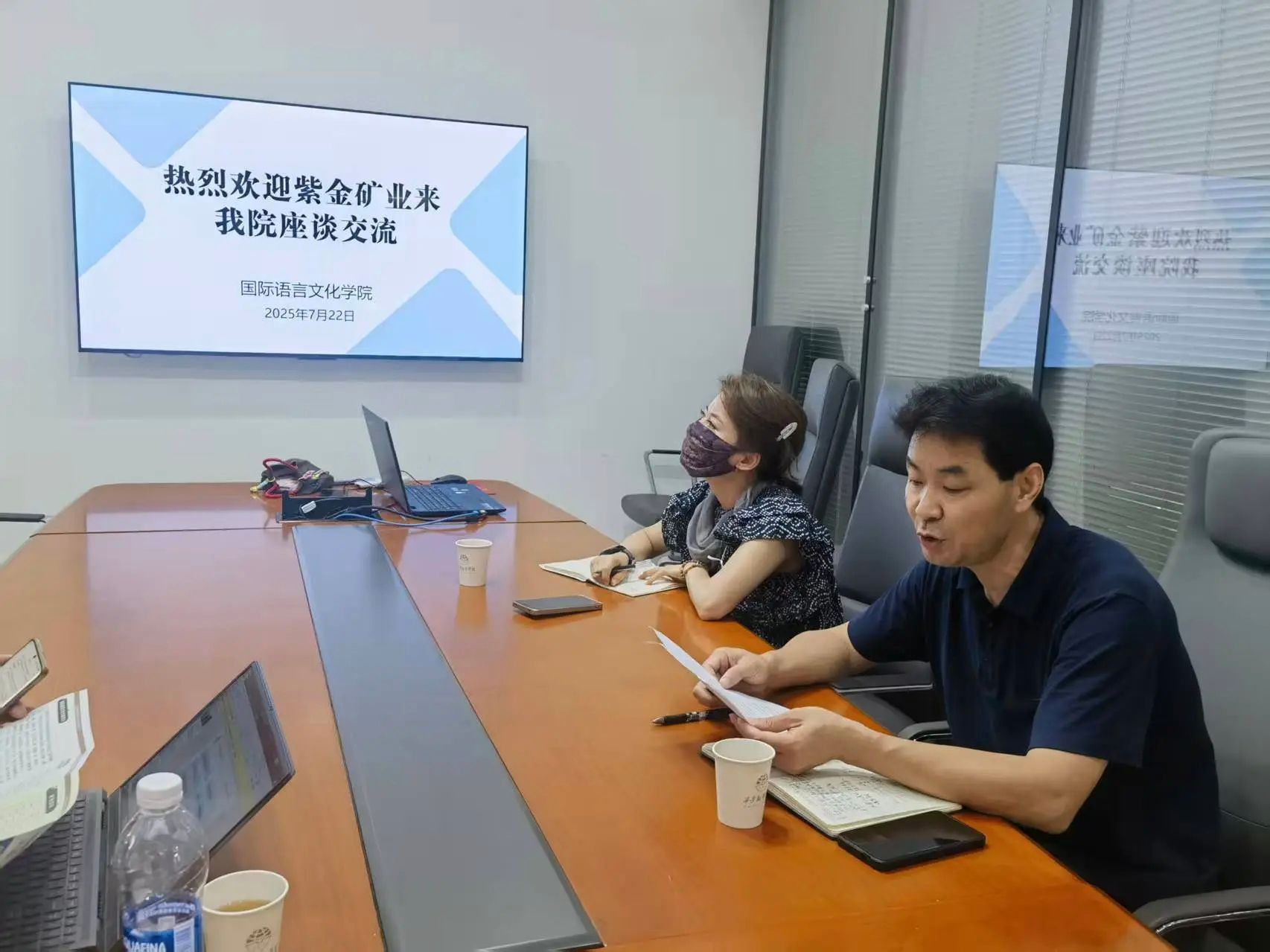 为深化产教融合、全面推进校企协同育人,7月22日上午,紫金矿业马诺诺锂业项目负责人温鸿志、人力资源部负责人徐英林一行到访国际语言文化学院,与学院党委书记、行政副院长宇文永康,综合办副主任尹娜及法语系教师崔钰子就校企合作事宜展开深入座谈。
