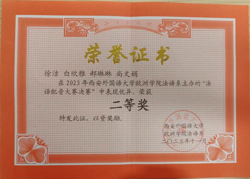 2020级法语系学生参加西安外国语大学法语配音比赛并获得佳绩