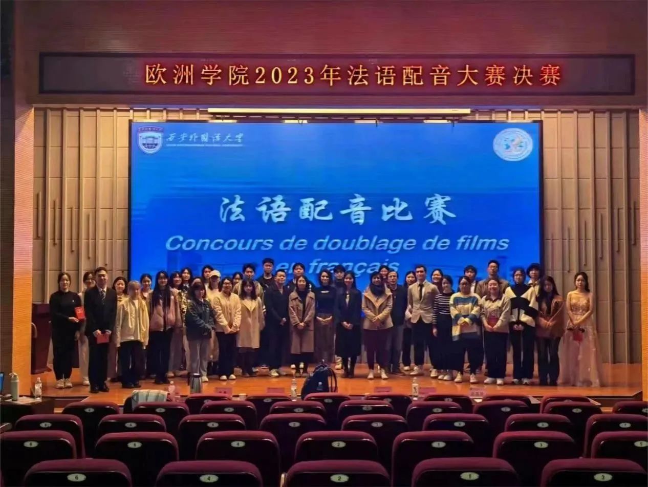 2023年11月21日,五校联合法语配音比赛决赛在西安外国语大学欧洲学院如期举行。西安外国语大学、西安外事学院、陕西师范大学、法语联盟,以及我校五所学校共七支队伍参与了本次比赛。