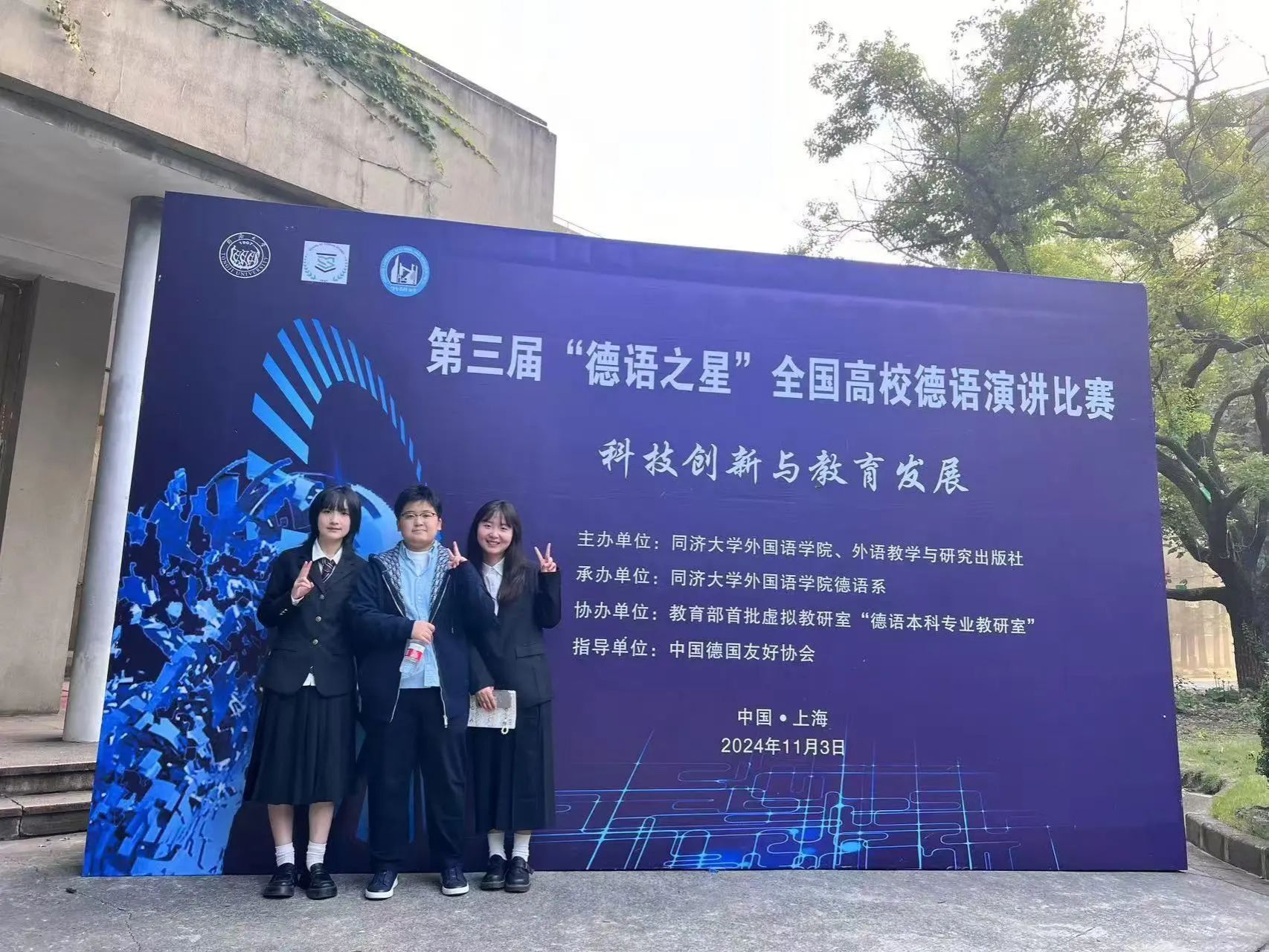 11月3日,由同济大学外国语学院和外语教学与研究出版社联合主办,同济大学外国语学院德语系承办,教育部首批虚拟教研室“德语本科专业教研室”协办,中国德国友好协会指导的第三届“德语之星”全国高校德语演讲比赛决赛在经历一上午的紧张比赛后顺利结束。国际语言文化学院德语系学生安思炀、张欣蕾和赵亚轩在激烈竞争中脱颖而出,与北京大学、北京外国语大学等15支来自“985”和“211”高校的队伍同台竞技,最终荣获本次比赛的三等奖。此次比赛的结果充分展现了我校德语学子出色的德语演讲能力和文化素养。