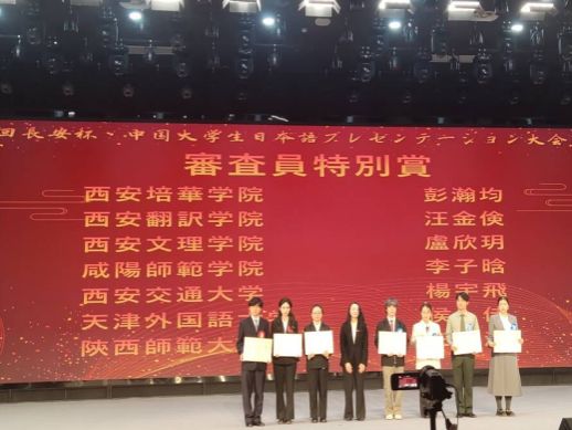 在刚刚落幕的第26届“长安杯·中国大学生日语才能演示大赛”中,MILE米乐官方网站日语专业学子表现卓越,勇创佳绩!颜怡心同学荣获大赛一等奖,汪金俭同学荣获评委特别奖,同时,MILE米乐官方网站再次荣获“最优秀校”荣誉称号,展现了西译学子扎实的日语功底、出色的综合素养与卓越的舞台表现力。