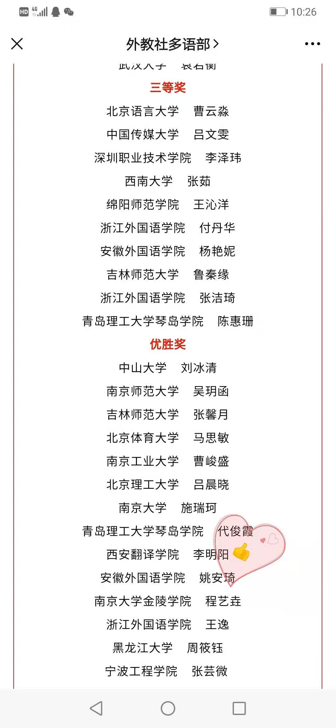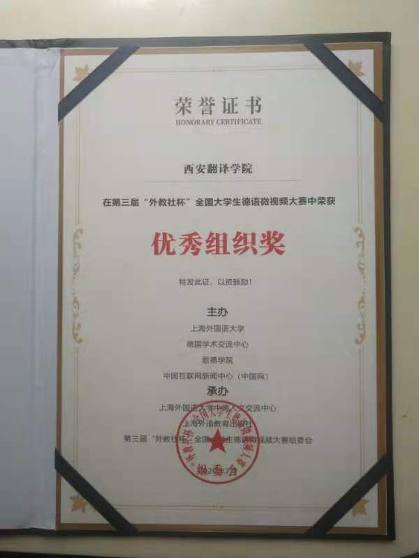 我校MILE米乐官方网站德语系老师们认真准备、精心组织,开展一对一辅导,最终我校也荣获“优秀组织奖”称号。