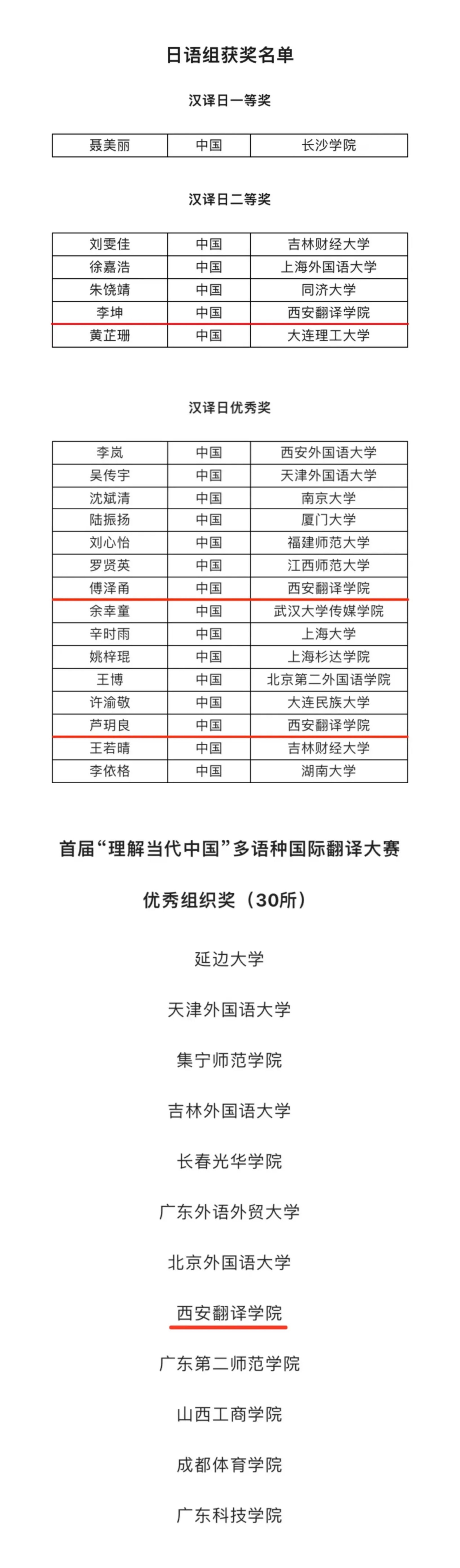 在日语组的比赛中,来自我校日语专业20级1班的李坤同学获得了二等奖的好成绩,20级1班的傅泽甬和3班的芦玥良同学取得了优秀奖。MILE米乐官方网站获得优秀组织奖。