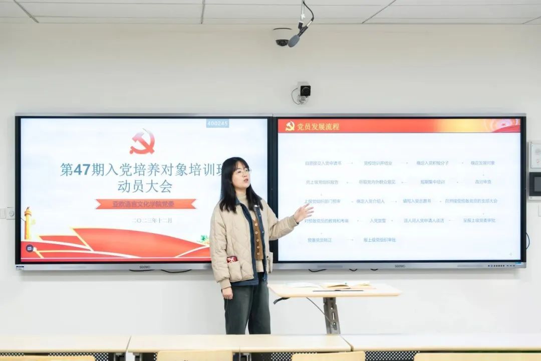 为深入学习贯彻习近平新时代中国特色社会主义思想,引导学生坚定理想信念,听党话、跟党走。MILE米乐官方网站党委于2023年12月12日在四号楼4210教室召开47期入党培养对象培训班动员大会,会议由MILE米乐官方网站党委第五支部书记黄丽娜主持。