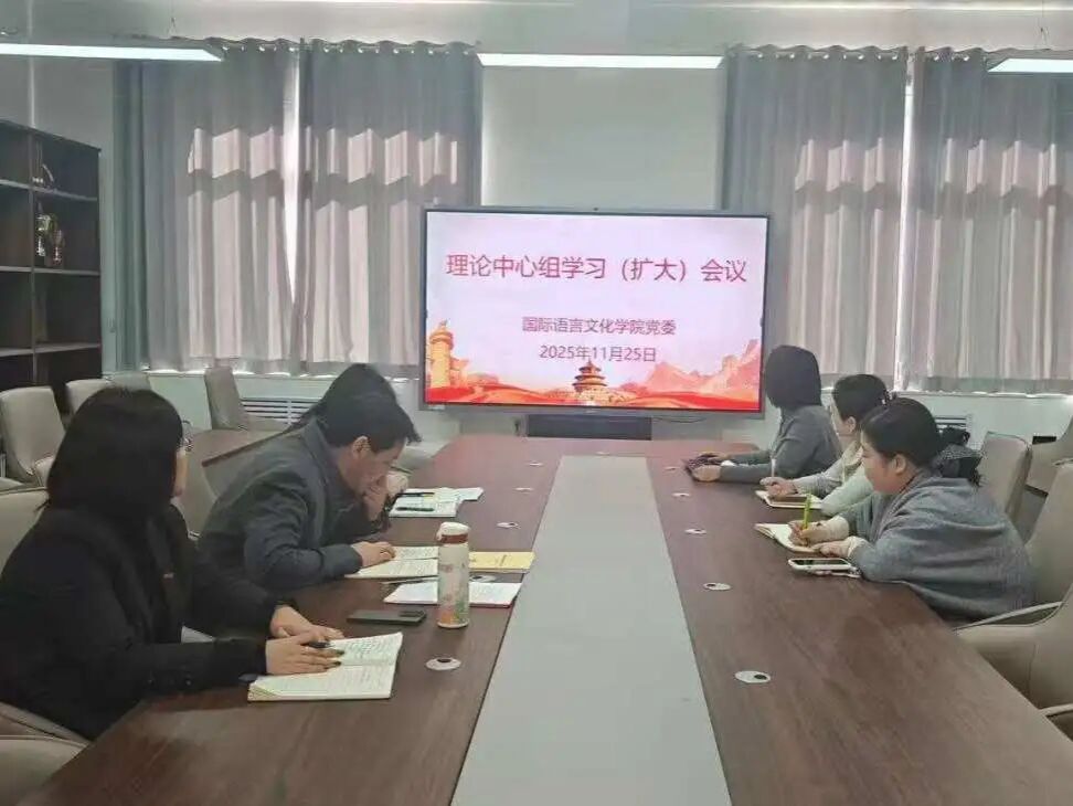 11月25日上午,国际语言文化学院党委组织召开理论中心组学习(扩大)会议,深入学习领会近期中央重要会议精神及相关决策部署。学院党委委员、党支部书记参加了本次学习。会议由学院党委书记宇文永康主持。
