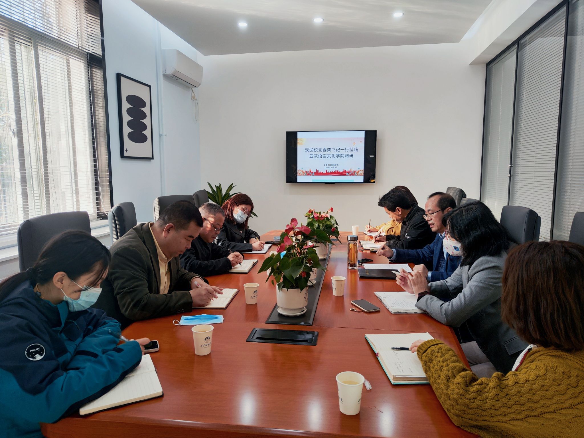 随后,宇文永康详细介绍了学院学生管理、党团建设、专业特色活动等方面情况。他表明,学院积极秉承丁祖诒老院长的“外语+专业+现代技能”的教育模式,将专业学习与四史教育相结合,在各类四史教育和红色活动中,兼顾思想政治教育和学生的语言技能培养,如举办多语种文化节、多语种诵读《共产党宣言》等。同时,他还提出,在学生管理中,学院目前的突出问题在于学生的心理问题,需重点关注的人数较多,针对此问题,学院积极发挥语桥心理工作室作用,做好心理辅导,疏导情绪,引导学生积极生活和学习。