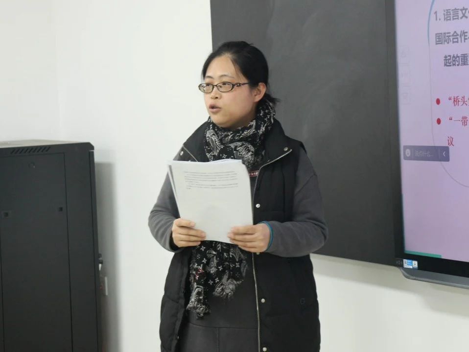在交流分享环节,国际语言文化学院教师崔钰子分享了关于《法语联盟与孔子学院在语言教学与文化传播方面的对比研究》的研究心得,她主要从选题背景、选题意义与研究价值、研究方法、研究内容、研究结论等几方面展开汇报。