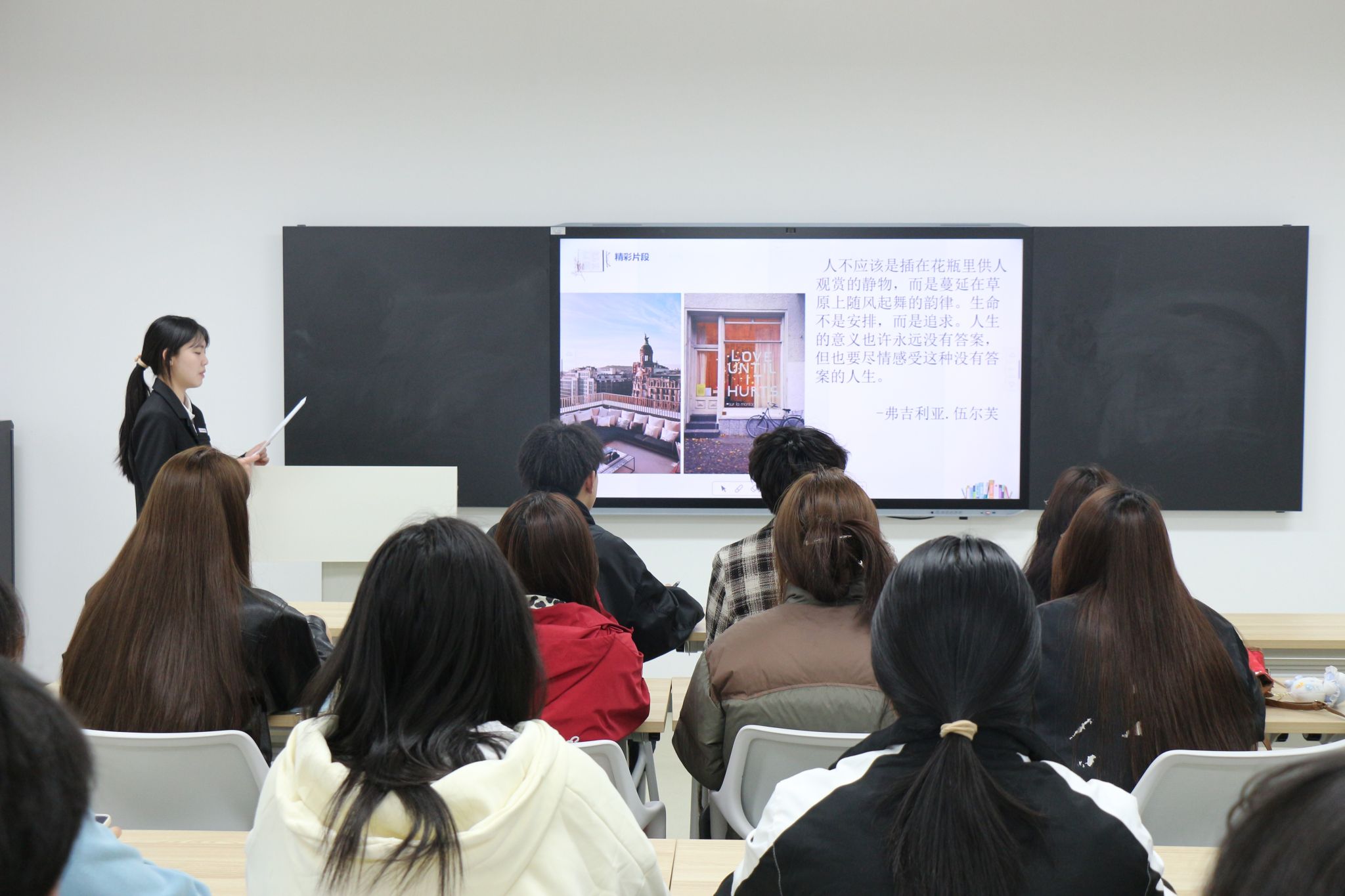英文学院学生会主席团成员董泽岩进行总结讲话,本次读书分享会形式多样,内容丰富,涵盖了多个精彩环节,为大家带来了一场充实的阅读盛宴。读书是一场永无止境的心灵旅程,它能拓宽我们的视野,丰富我们的内心世界。希望同学们以此次分享会为契机,保持对阅读的热爱,将阅读融入日常生活,让读书成为一种习惯。