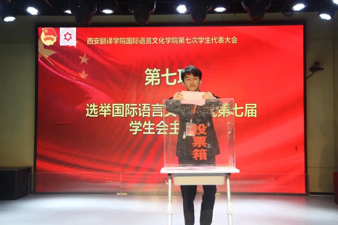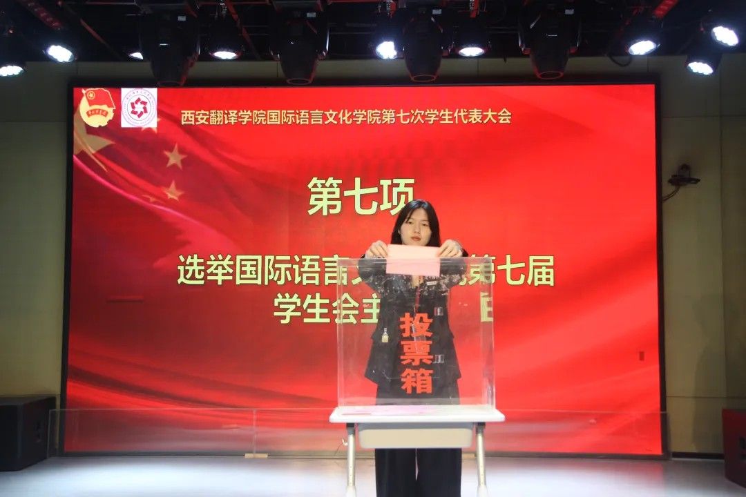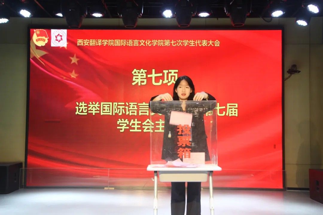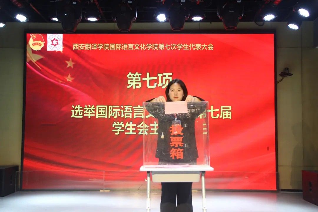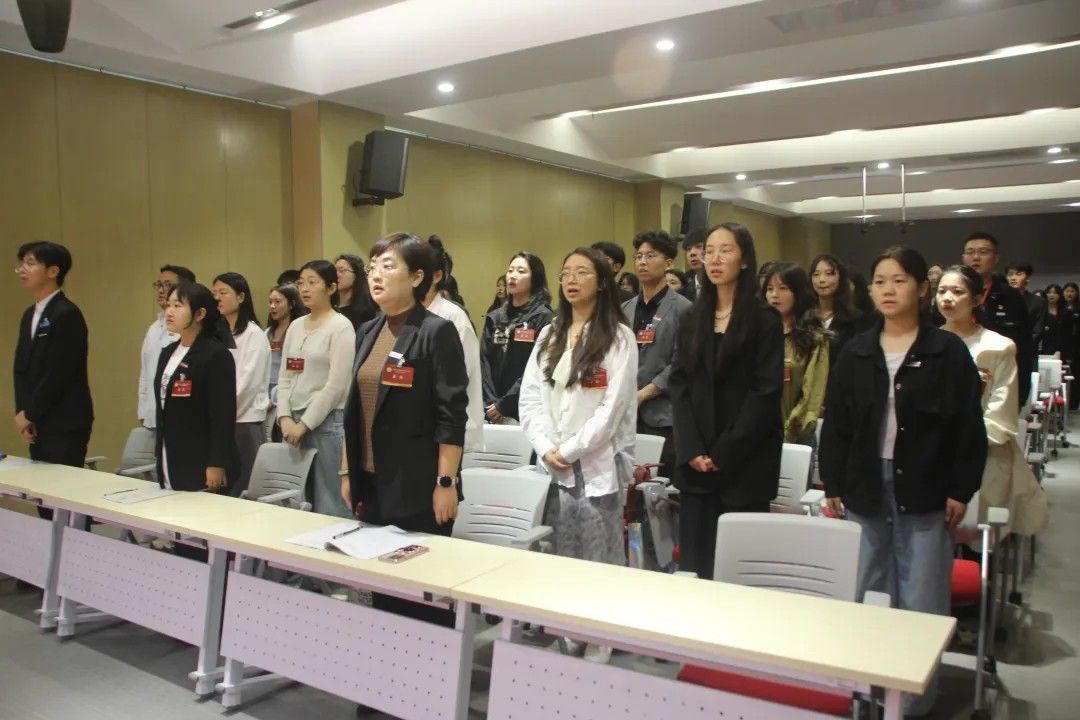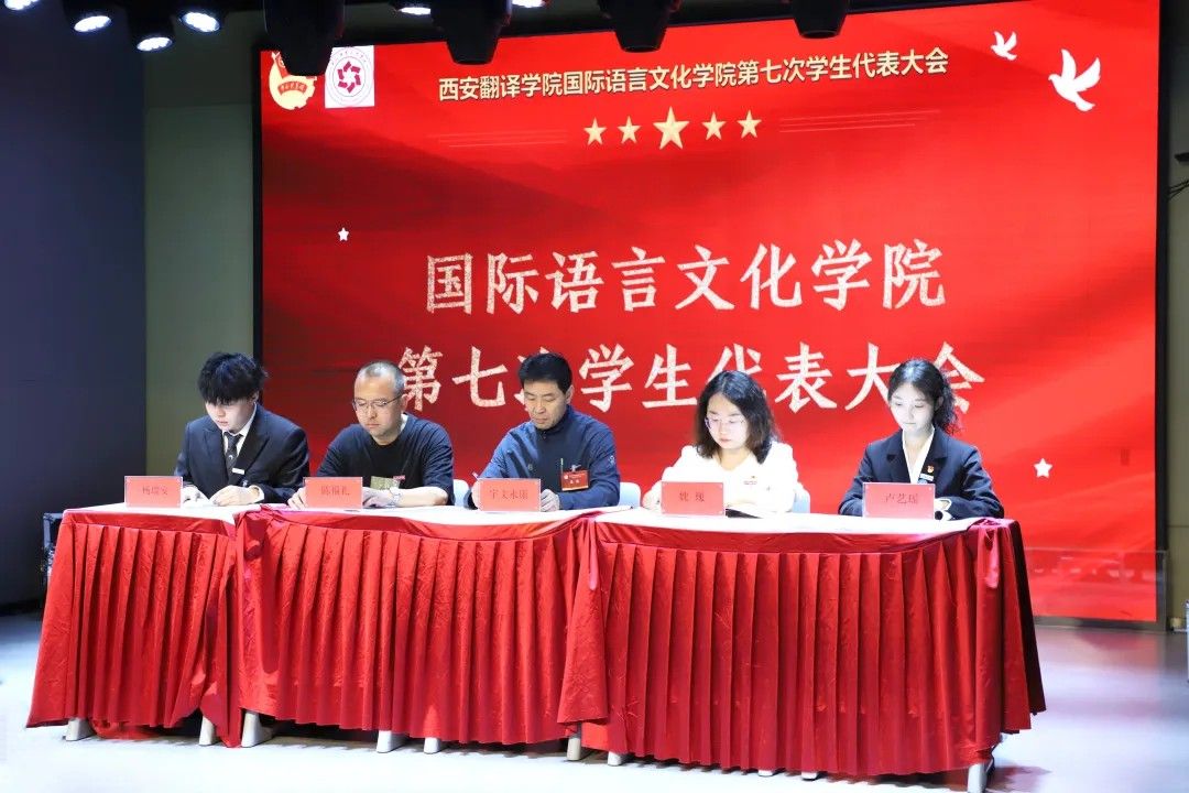 2025年5月8日国际语言文化学院学生会第七次学生代表大会在西区小剧场隆重召开。