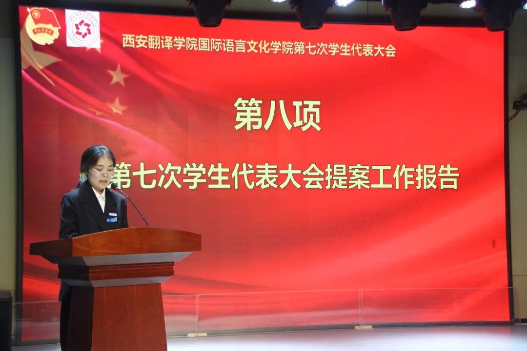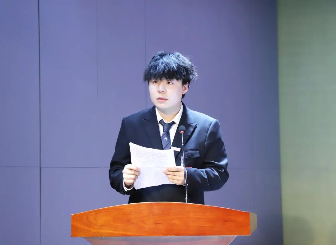 国际语言文化学院第六届学生会主席团代表杨瑞安同学做工作报告。他说道,国际语言文化学院第五届学生会主席团在 2024 - 2025年完成了多项重要工作。他们优化组织效能,夯实发展根基,增强学生会的凝聚力,提高工作效率;厚植团队协同,凝聚发展合力,发挥成员优势,巩固和加强了学生会的政治性、先进性、法定性和唯一性;深化品牌活动,彰显学院特色,提高了同学们的学习兴趣,还加强了学生与教师之间的沟通与合作。