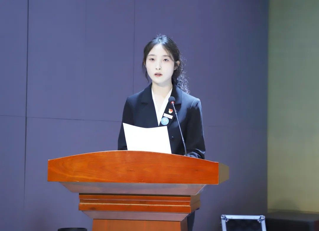 校学生会主席团代表卢艺瑶发言:肩负时代赋予的重任,在时代的宽广舞台上施展才干,以本次学代会为新的起点,勇担桥梁纽带之责,在语言文化的深耕中厚植理想,在服务同学的实践中增长才干。携手同行,用奋斗书写属于国际语言文化学院学子的青春答卷!