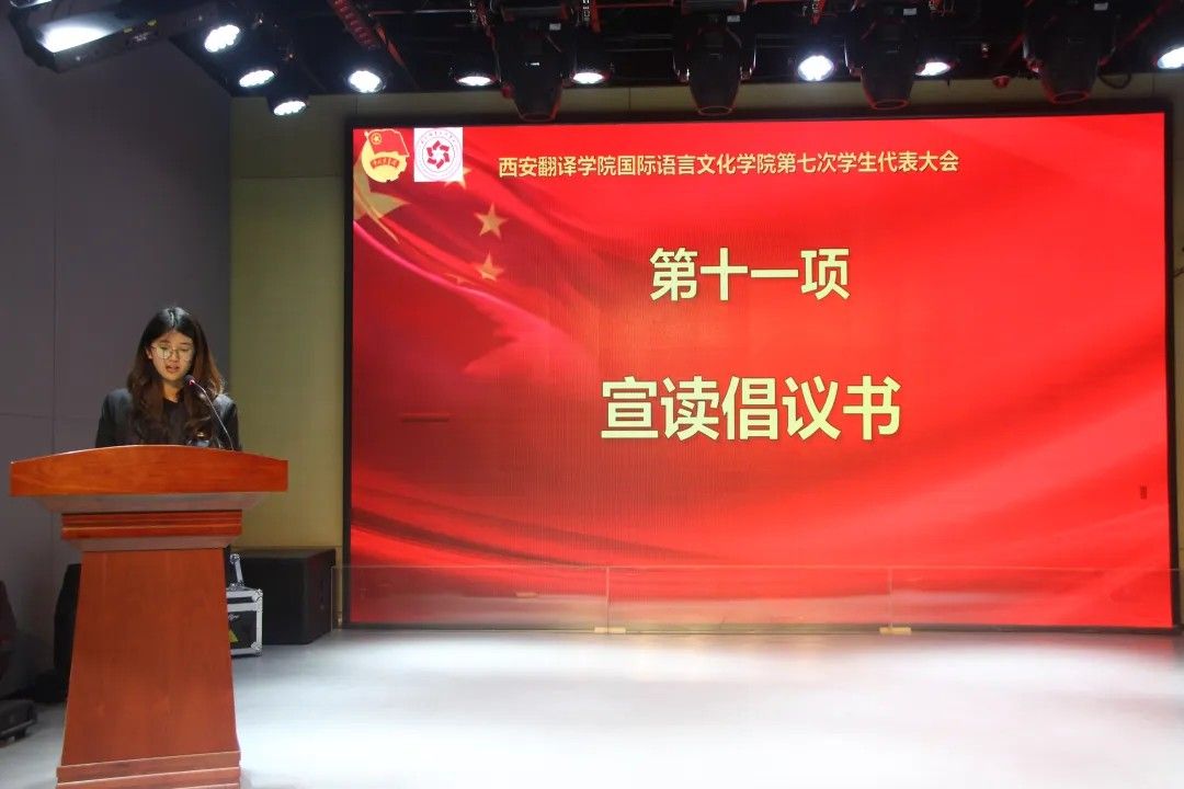 由国际语言文化学院党委书记、副院长宇文永康上台致开幕词,他强调要深入学习贯彻党的二十大精神,牢记习近平总书记对青年的殷切嘱托,以高度的政治责任感履行代表职责;其次要聚焦同学们成长成才的实际需求,积极建言献策,真正发挥桥梁纽带作用;同时要立足外语专业特色,在服务国家“一带一路”建设和国际传播能力建设中展现西译学子的青春风采。