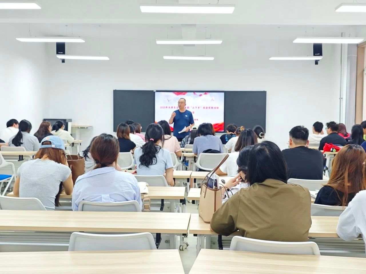 陈老师特别强调,本次活动不仅是一次实践锻炼的机会,更是展现青春担当的舞台。他鼓励同学们积极报名参与,在实践中大胆探索、勇于创新,将专业知识与社会需求相结合,在乡村一线贡献青春力量。生动的讲解与恳切的号召,点燃了同学们的参与热情,让大家对即将到来的实践之旅充满期待。