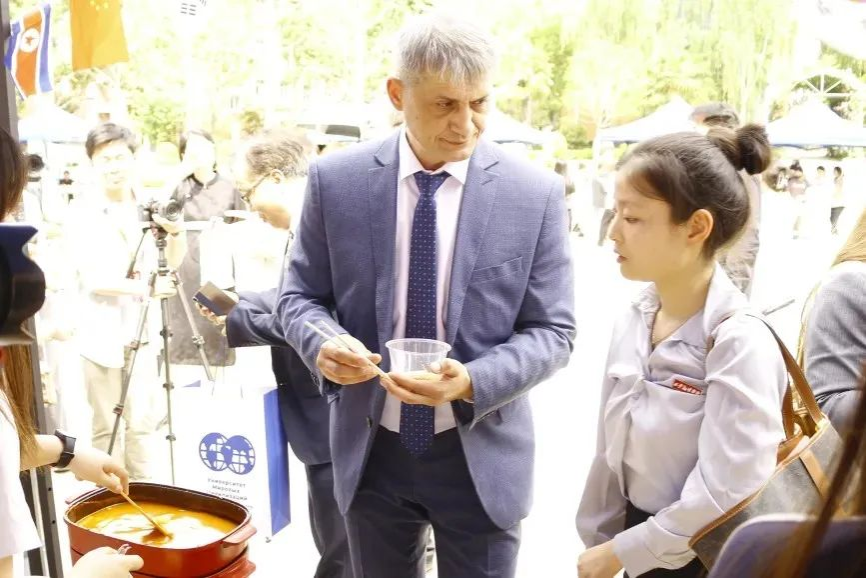 与会领导及师生首先来到俄罗斯体验馆,开启一段充满异域风情的文化之旅。俄语专业的学生和俄罗斯留学生一起以精彩的唱歌表演率先登场,他们用纯正的俄语和饱满的热情,演绎了多首经典俄罗斯歌曲,激昂的旋律与嘹亮的歌声,瞬间点燃现场气氛,将俄罗斯音乐的独特魅力展现得淋漓尽致。