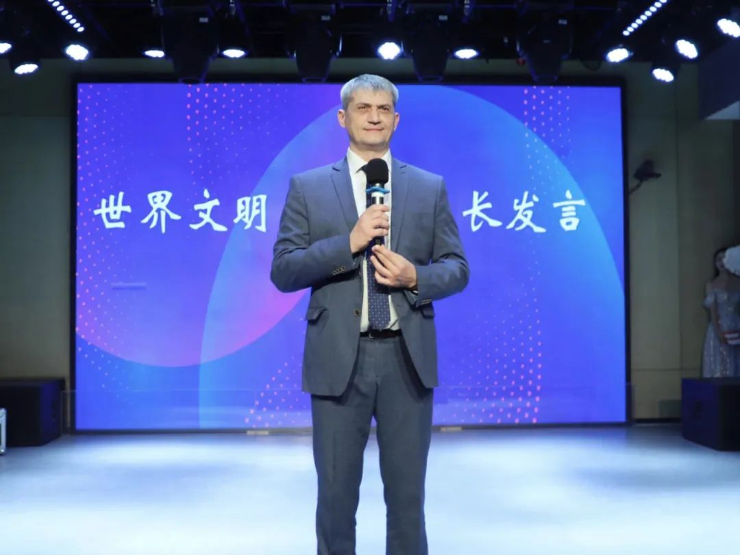 随后,世界文明大学副校长亚历山大・阿列克谢耶维奇发表致辞,他阐述了多语种学习与文化互鉴的重要性,为现场师生带来深刻启发。