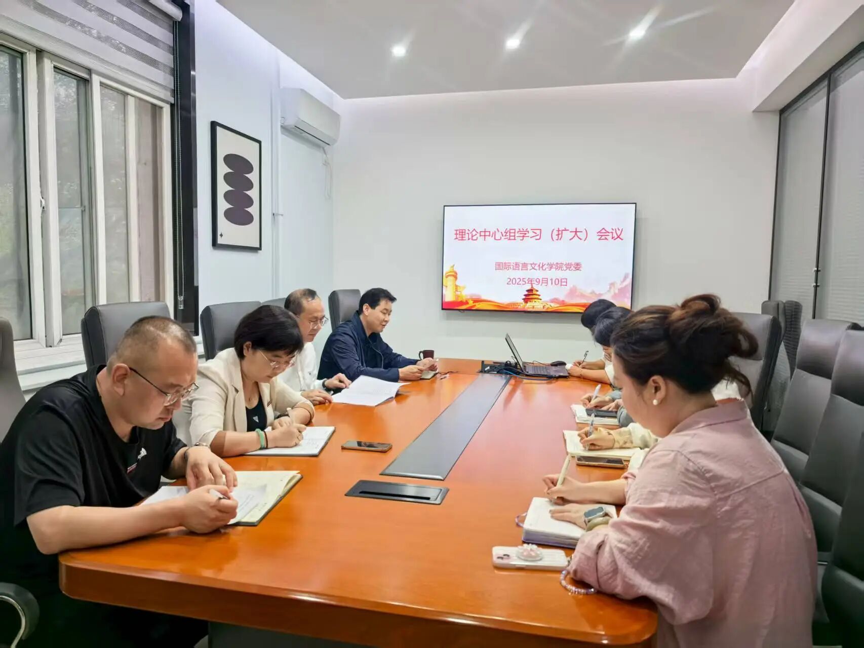 9月10日上午,国际语言文化学院党委召开理论中心组学习(扩大)会议,集中学习习近平总书记近期发表的重要文章及在中共中央政治局集体学习时的重要讲话精神。学院党政领导班子成员、党委委员、党支部书记参会。学院党委书记宇文永康主持会议。