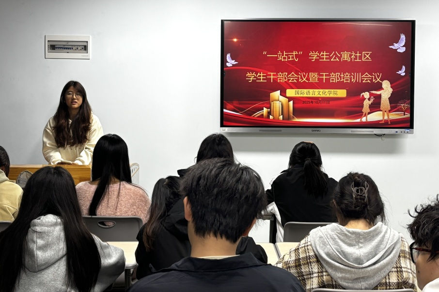 为进一步强化“一站式”学生公寓社区的育人能力,提升学生干部的服务能力与责任意识,2025年10月11日,国际语言文化学院团总支“一站式”学生公寓社区学生干部会议暨干部培训会议在三号楼3120创咖顺利召开。团总支全体学生干部齐聚一堂,共话服务、同研成长。