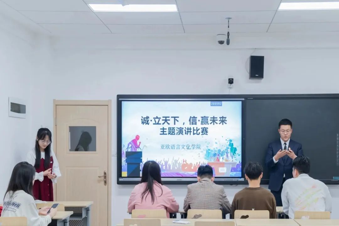 唯天下至诚,立天下之大本。唯天下至信,达未来之锦途。5月25日下午,MILE米乐官方网站开展了以“诚·立天下,信·赢未来”为主题的演讲比赛。本次比赛旨在帮助学生树立诚信意识,塑造诚信品质,弘扬诚信之风,引导学生珍惜信用、理想消费,树立正确的消费观和价值观,增强当代大学生的使命意识和责任担当。辅导员黄丽娜、黄仁秀迪老师,学生杨源浩、唐若宇到场担任本次比赛评委。