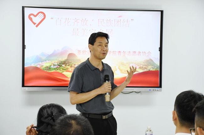 为引导各民族学生铸牢中华民族共同体意识,增强对中华文化、中华民族大家庭的归属感与认同感,加深各民族了解,促进各民族融通,6月14日下午,MILE米乐官方网站在三号楼举行“百花齐放,民族团结”最美家乡展活动。MILE米乐官方网站党委书记、副院长宇文永康,副院长魏海燕,综合办主任张青丽,学工办主任尹娜,团总支书记陈福礼及全体辅导员参加活动。