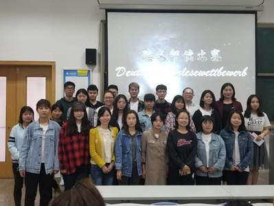 比赛形式为自选朗诵,限时3-5分钟,从班级初选比赛脱颖而出的17名选手各个表现不俗,他们发音标准,语调清晰,情感真挚饱满,赢得了现场阵阵掌声。随后,卞红联老师对选手们的表现进行了点评。最终,176110501班陶泓予同学突出重围荣获比赛一等奖;171110502班王梓璇同学,171110502班吴钰同学,荣获二等奖;171110502班张佳薇,万芳娟同学,171110501董思嘉同学,171110501班李嘉豪同学荣获三等奖。此次比赛的举行,目的在于让学生们重视德语学习初始阶段的发音,为之后的德语学习打下牢固的基础!
