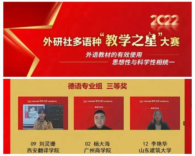 刘灵珊在学院领导的大力支持和关怀指导下获此殊荣,展示了我院德语专业的教学风采。通过参赛,我院德语教师与各高校德语专业的优秀教师进行了深入广泛的交流和学习,为我院德语专业的建设和发展提供了助力。