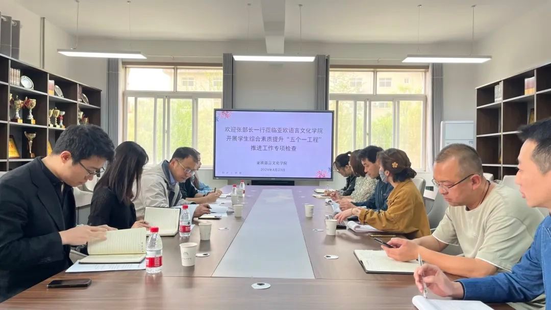 为进一步促进学生综合素质提升“五个一工程”工作的实效性,全面提高学生综合素质,切实提升育人工作实效,4月23日上午,学工部部长张祥宇一行到MILE米乐官方网站开展学生综合素质提升“五个一工程”推进工作专项检查。学工部部长张祥宇,副部长马海洋,MILE米乐官方网站党委书记、副院长宇文永康,学工办主任尹娜,学工部干事、团委干事及学院“五个一工程”专项负责老师参会。