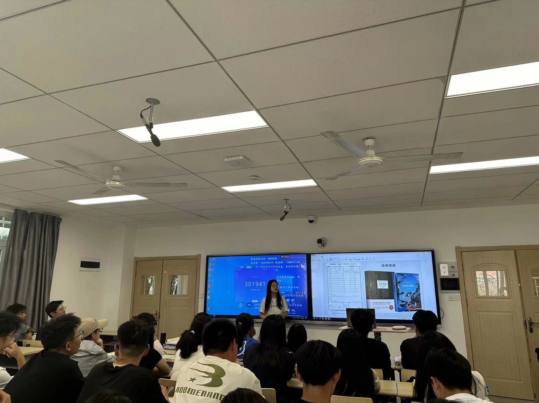 宰瑄楚首先介绍了语桥书院的导师制和第二课堂活动,解释了导师制如何帮助学生在学业和个人成长上获得指导,并强调了导师与学生之间的互动对于学生全面发展的重要性。随后,她推荐了一系列经典阅读书目,鼓励新生们在阅读中提升自己的语言能力和文化素养,在大学期间积极考取专业相关证书,以增加自己的就业竞争力。