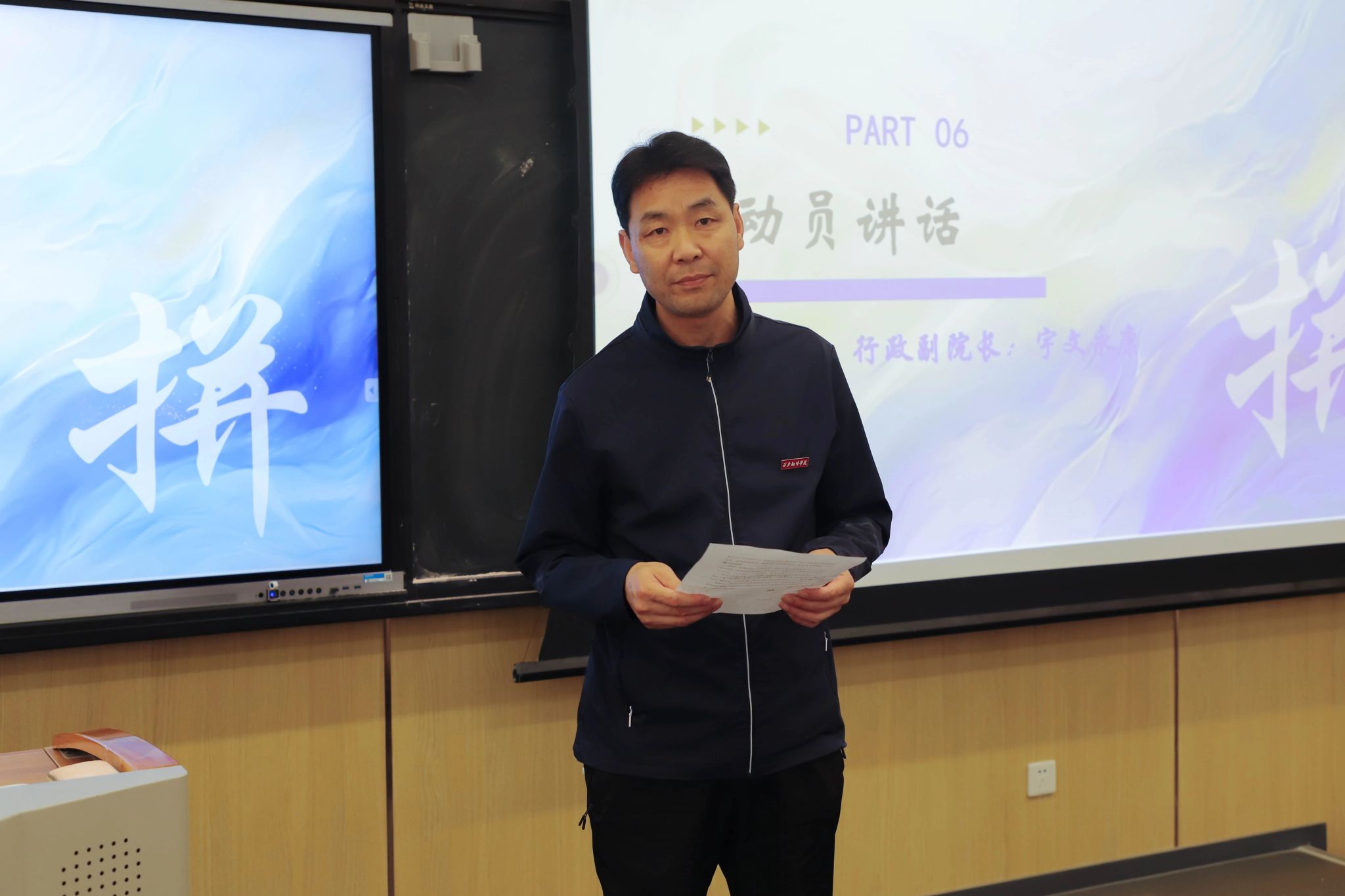 宇文永康作总结讲话。他表明,考研是本科生提升学历关键的一步,也是自我肯定、价值彰显与技能提高的最佳途径。他鼓励学子在考研中要树立信心、坚定信念,做好打赢持久战的准备。宇文永康强调,在规范的时间内合理安排背诵科目能够达到事半功倍的效果,并期望同学们能够抓住机遇,以此次考研动员大会为契机,充分利用好学校提供的学习资源,扎实做好考研的各项准备,重点关注相关政策,抓住机遇,进行有针对性的备考,保持良好心态,以更积极的态度完成最后的冲刺阶段,以梦为马,成功“上岸”。