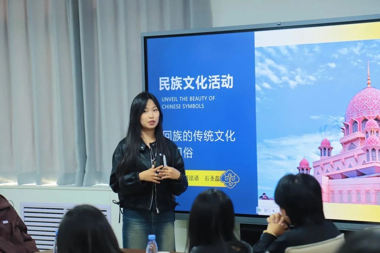 会上,来自不同民族的七位同学通过精心制作的PPT,向在场师生展示了各自民族丰富多彩的文化特色与独特魅力。从壮丽的自然风光到诱人的地方美食,从精美的民族服饰到独特的传统习俗,从悠扬的民族音乐到精湛的工艺制品,每一幅画面都充满了浓郁的民族风情。