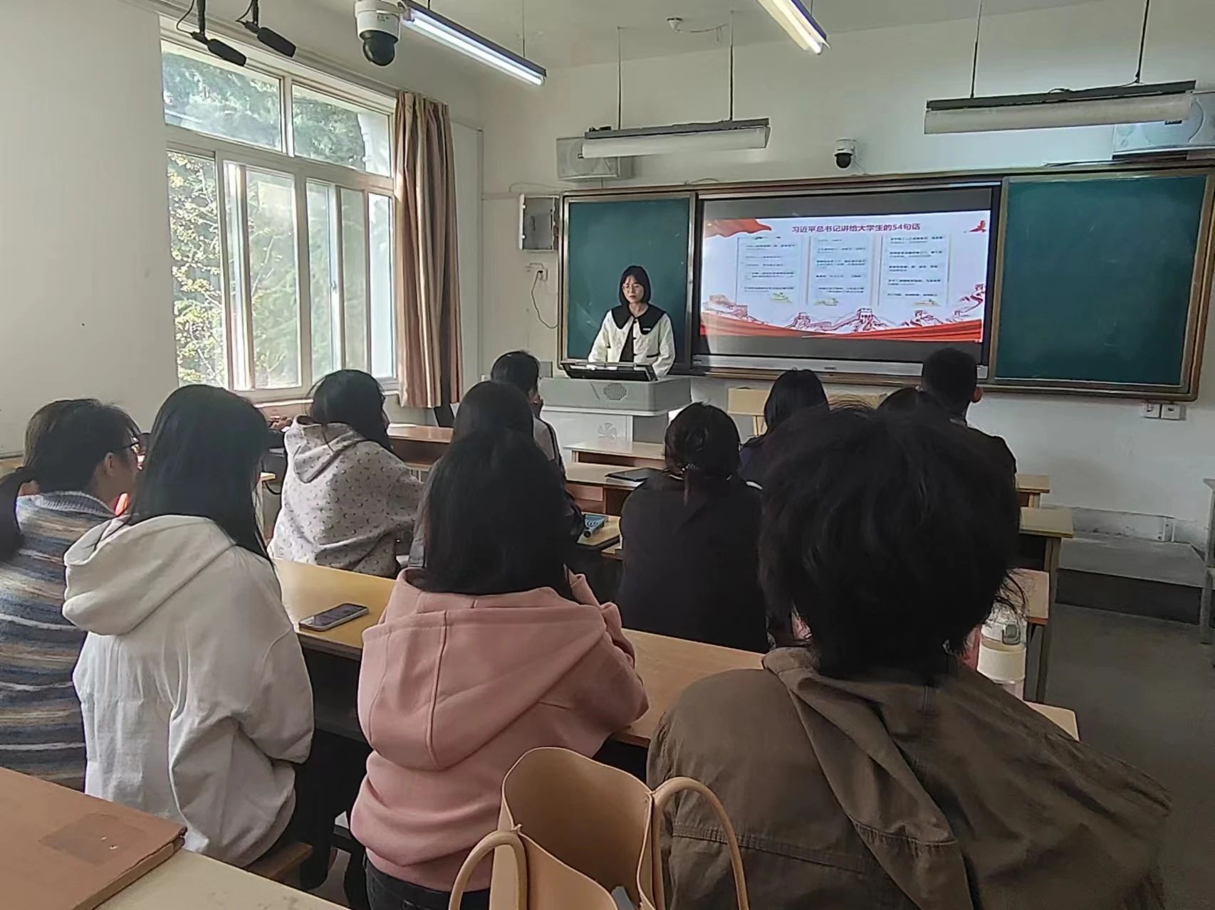 在交流环节,同学们积极发言,分享自己对“两个结合”思想的理解和感悟。