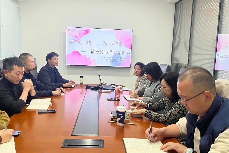 为帮助辅导员缓解日益增长的工作压力,提升心理健康水平,11月13日下午,国际语言文化学院举办“给心减压,为爱助力”辅导员心理团体辅导活动。学院特邀学工部心理咨询服务科主任唐翠宁主持并进行现场指导。学院党委书记、副院长宇文永康,综合办副主任尹娜,团总支书记陈福礼及全体辅导员参加活动。