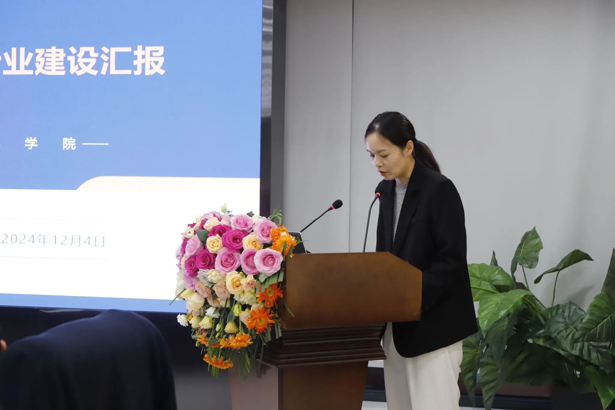 在专业汇报环节,西译国际语言文化学院副院长魏海燕对学院日语省级一流专业建设点建设情况进行了重点介绍;西译国际语言文化学院法语系主任王珊珊对学院法语省级一流专业建设点建设情况进行了详细汇报。