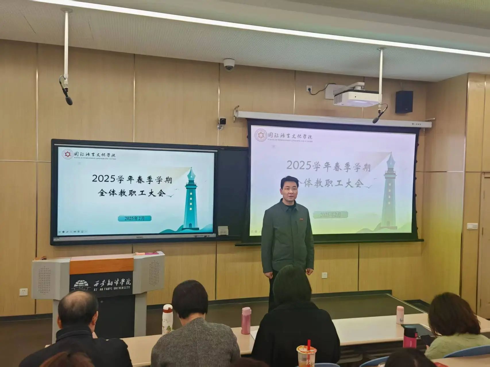 2月28日下午,国际语言文化学院召开2025学年春季学期全体教职工大会,旨在全面总结2024年工作,部署2025年重点工作。学院党委书记、副院长宇文永康主持会议,学院领导班子成员及全体教职工参加会议。