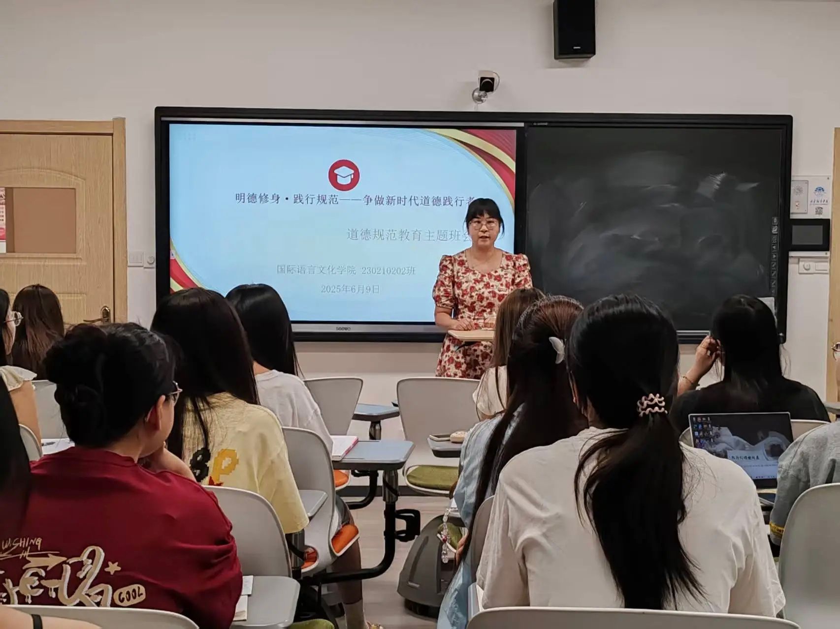 为深入培育和践行社会主义核心价值观,引导大学生树立正确的道德观念与行为准则,近日,国际语言文化学院各年级辅导员组织召开“明德修身,践行规范”大学生道德规范教育主题班会。全体学生参会。