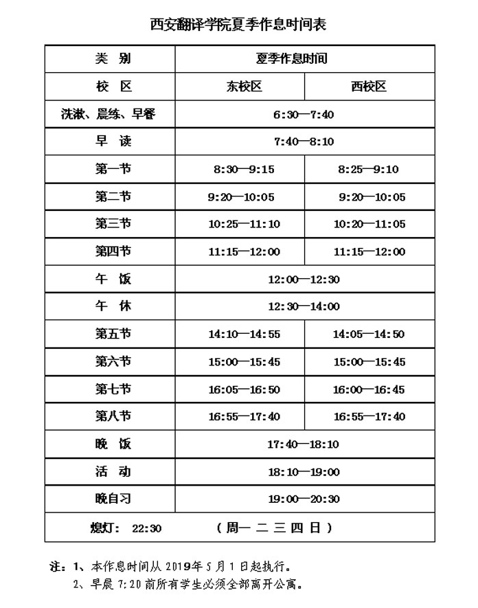 5月4日晚自习起,全校进入夏季作息时间(见附件),请各单位、各部门及时做好相应教学和工作安排。